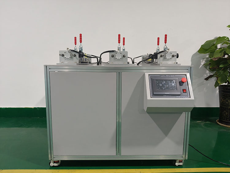 该设备专门用于筋膜枪产品老化测试,设备设计参考T/CAQI 354—2023标准,为更方便快捷的进行老化测试。设备采用PLC和触摸屏控制,可实时监控测试情况以及记录测试数据,测试异常时设备报警并停机。